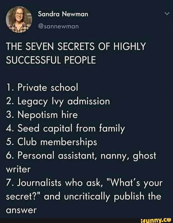 To be honest, this post sums up what most people think of successful people:
